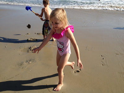 and she was a little freaked out when the boys were digging for sand crabs later at the beach.